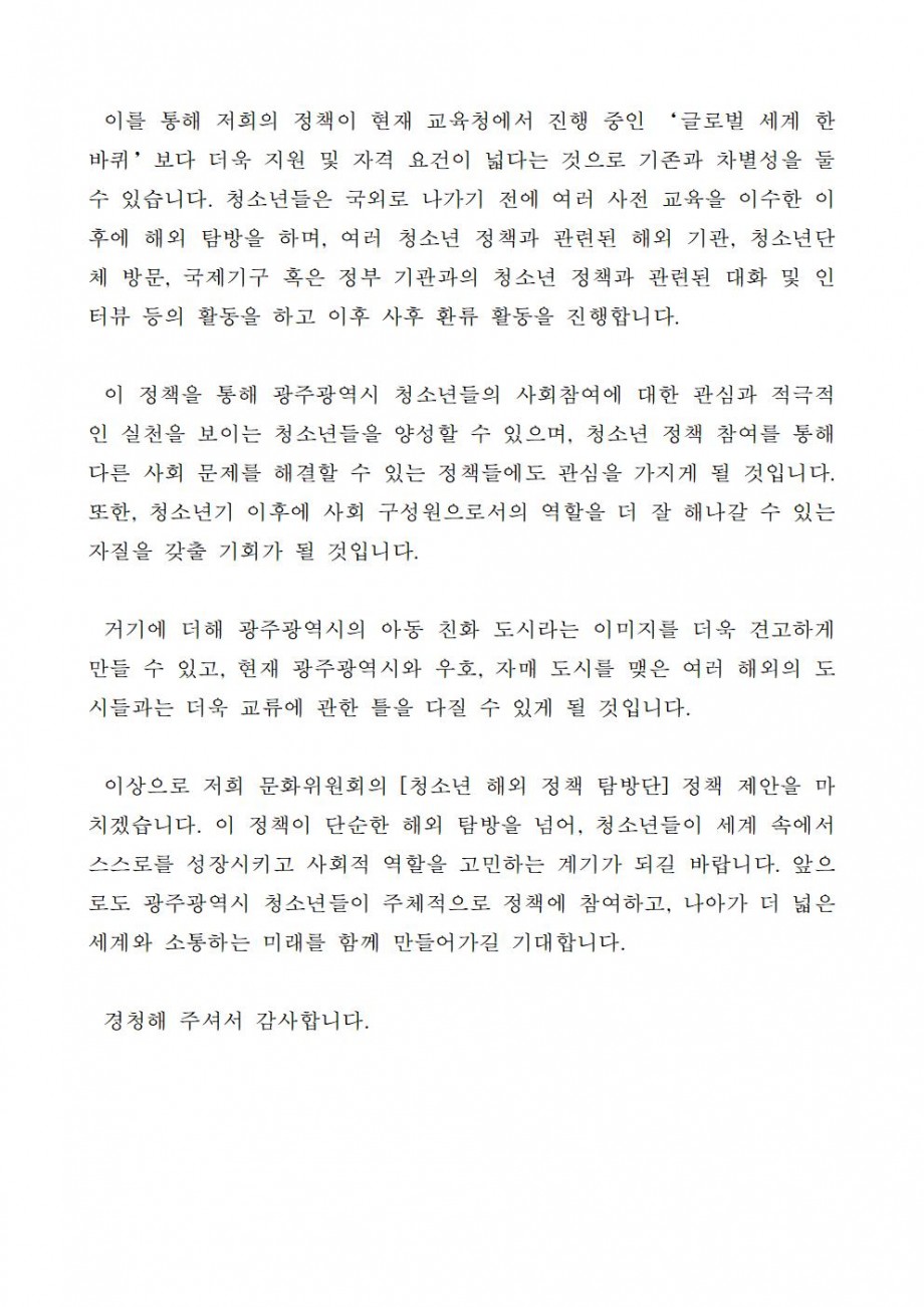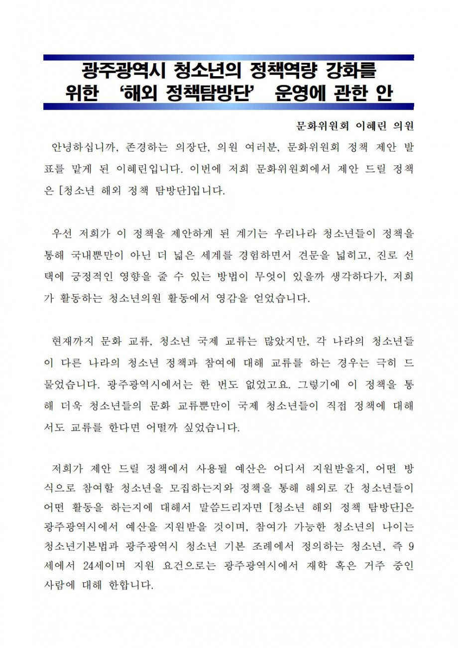 [2025-02] 광주광역시 청소년의 정책역량 강화를 위한 ‘해외 정책탐방단’ 운영에 관한 안