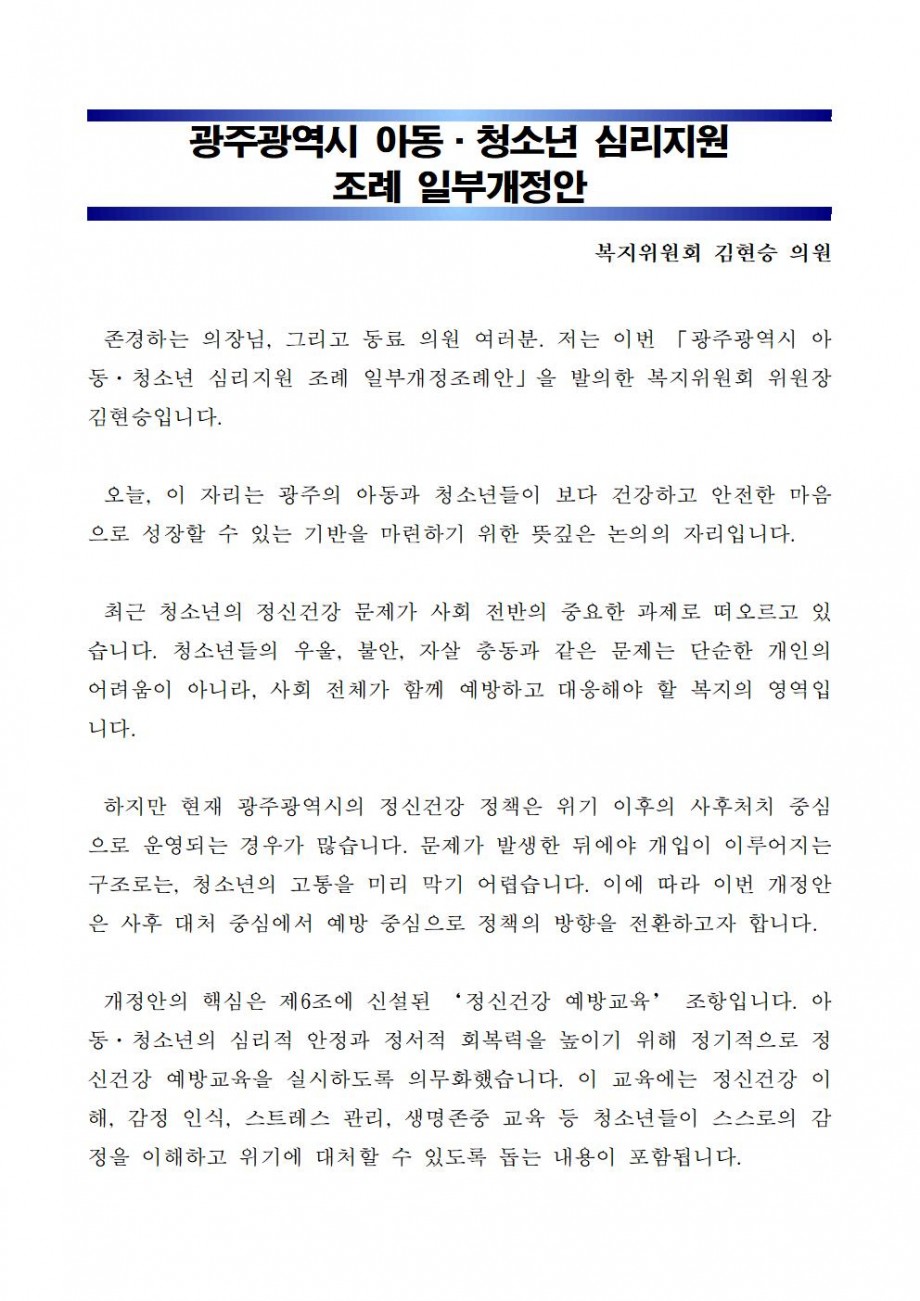 [2025-03] 광주광역시 아동·청소년 심리지원 조례 일부개정안